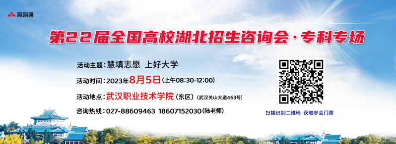 8月5日上午,2023年度最后一场高招咨询活动——第22届全国高校湖北招生“专科专场”咨询会将在武汉职业技术学院(东区)隆重举办。